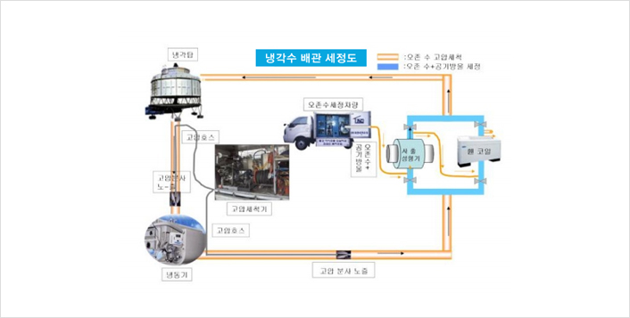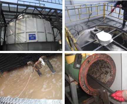 보충수의 여과, 살균 및 살조처리, 슬라임 방지 및 박리처리 slid filter를 통한 슬럿지 퇴적방지, 기존 냉각수 살균, 살조처리