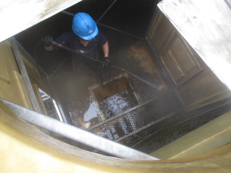 냉각탑 세척 중